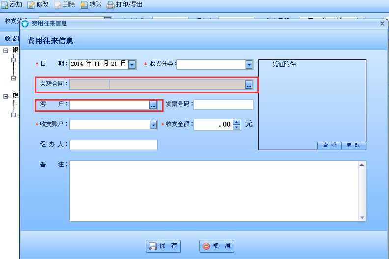 記錄往來明細“關聯合同”可關聯可不關聯: