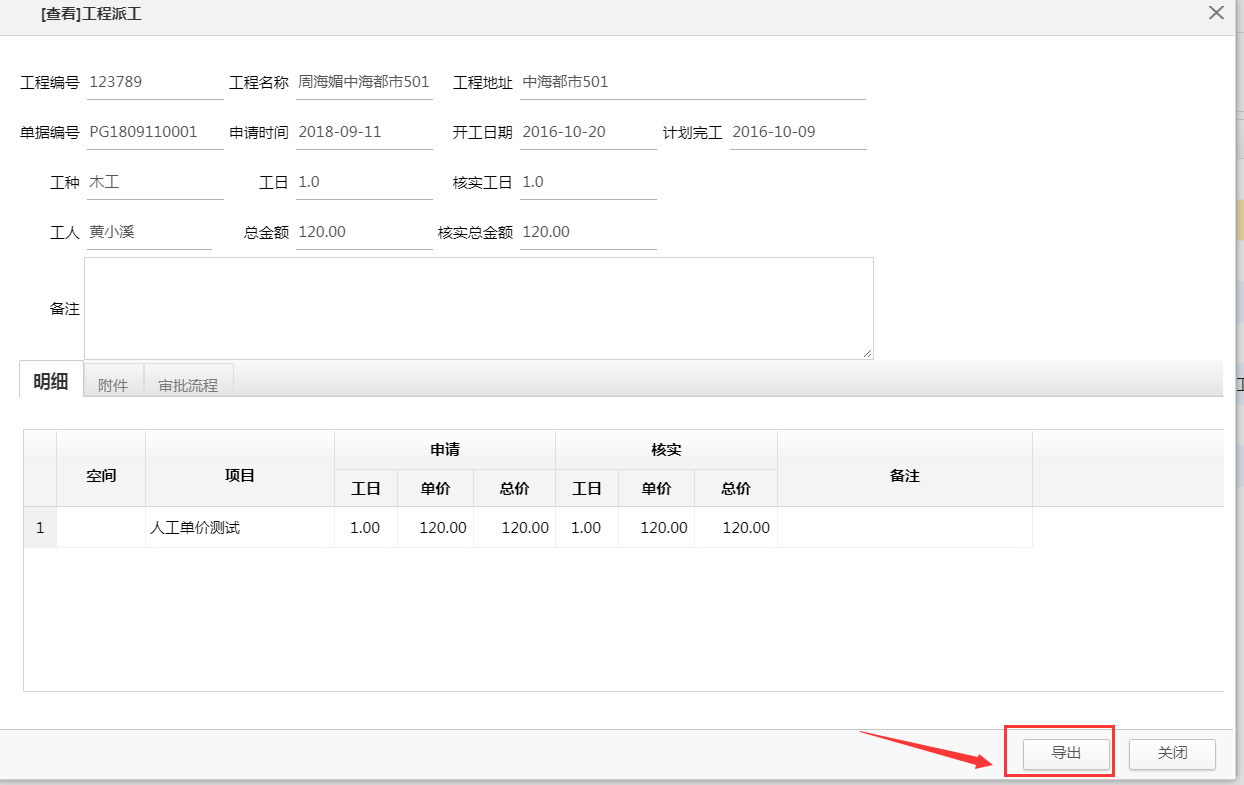 二、工人派工單可直接導出(直接點擊導出即可)