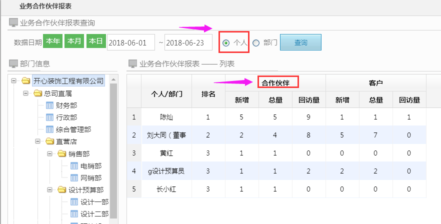 二:業員及各部門員工添加的合作伙伴可根據數量進行排名
