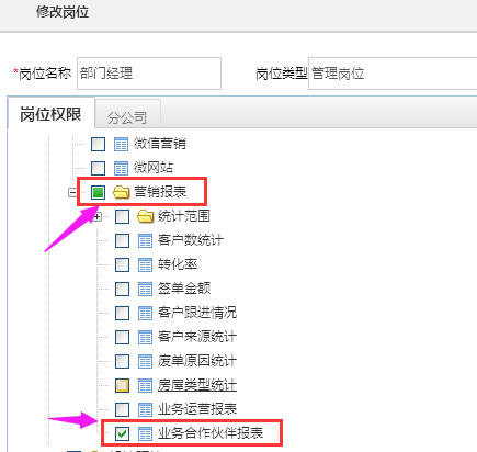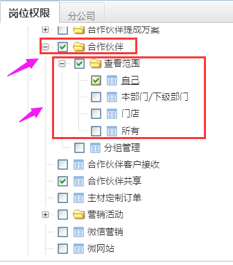 系統設置---部門/用戶--崗位管理--營銷管理--合作伙伴--查看范圍