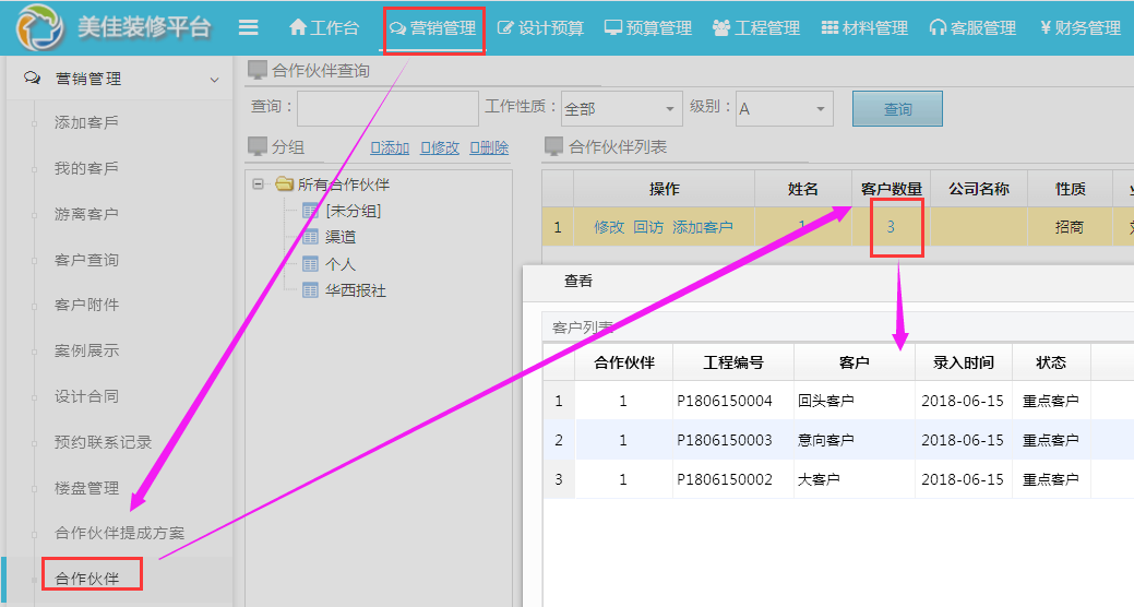 “合作伙伴 ” 作為裝修公司的戰略伙伴,是實現共贏的必備條件之一。近期美佳技術針對客戶提出的這一需求加班加點的開發了相關功能,具體內容大家動動手指往下拉哦!??!