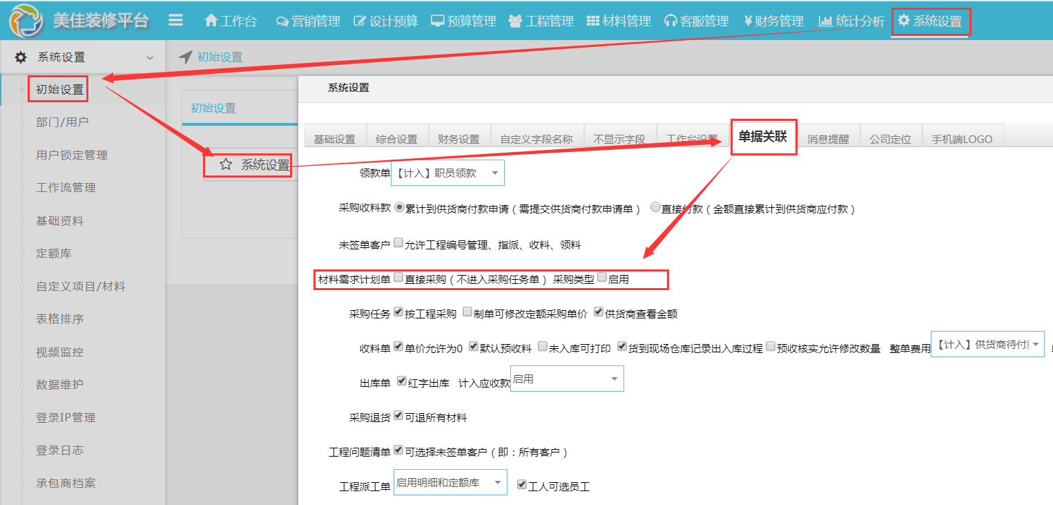 依次點擊系統設置---初始設置--系統設置---單據關聯【取消直接采購(不進入采購任務單)】