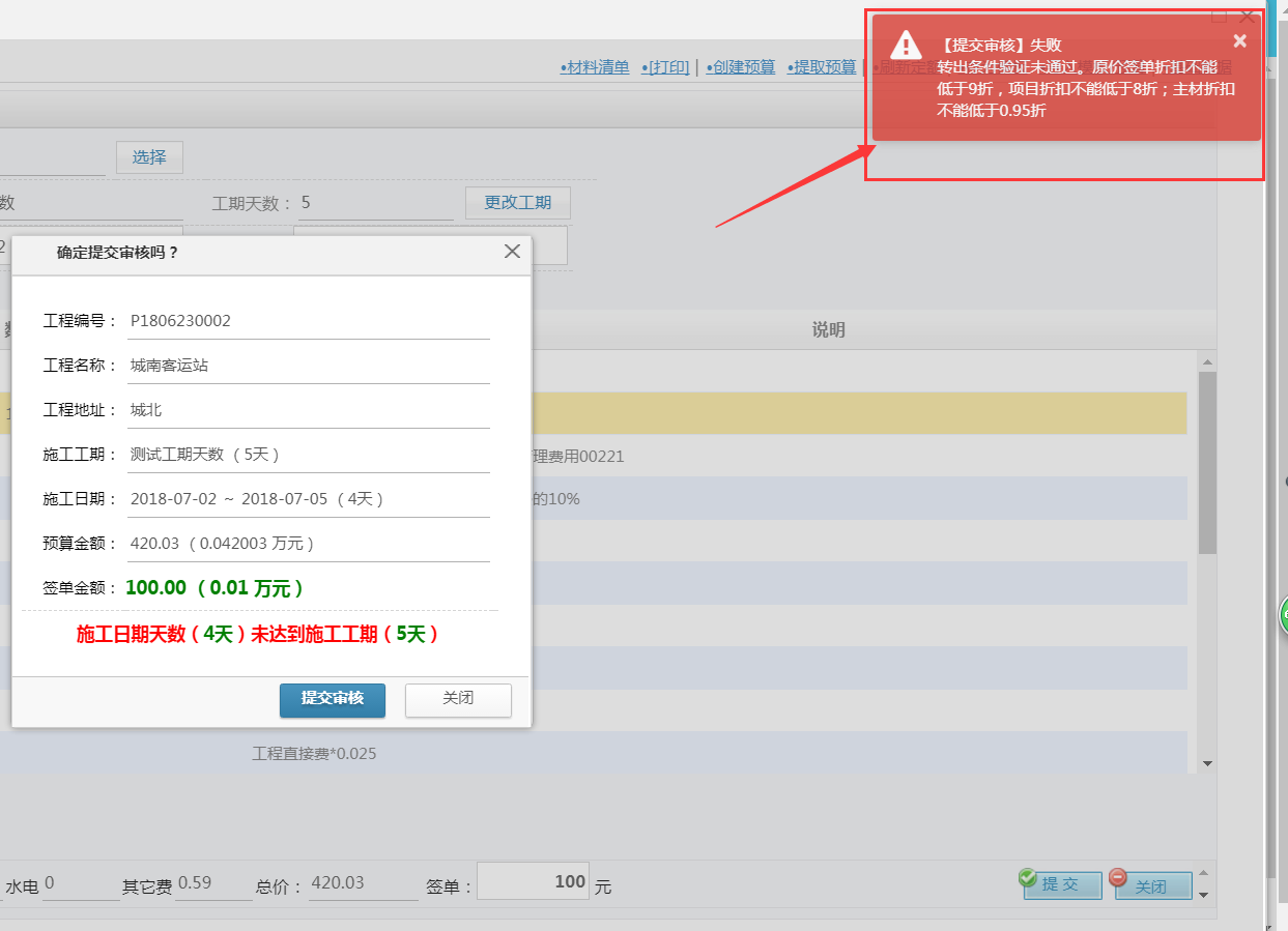 符合轉(zhuǎn)出設(shè)置的權(quán)限后此預(yù)算才能提交成功,否則會(huì)收到提醒提交失敗,如下圖所示