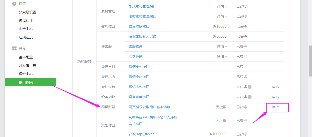 2、接口授權(quán)。授權(quán)回調(diào)頁面域名,需填寫:api.zxerp.net.cn