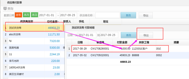 ,根據牛裝裝飾公司提出供貨商付款增加付款明細表格導出這一需求,