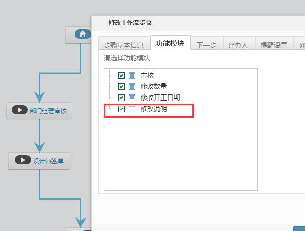 1、進(jìn)入【系統(tǒng)設(shè)置】---【工作流】---【預(yù)算審核】,打開功能模塊將修改說明勾選。
