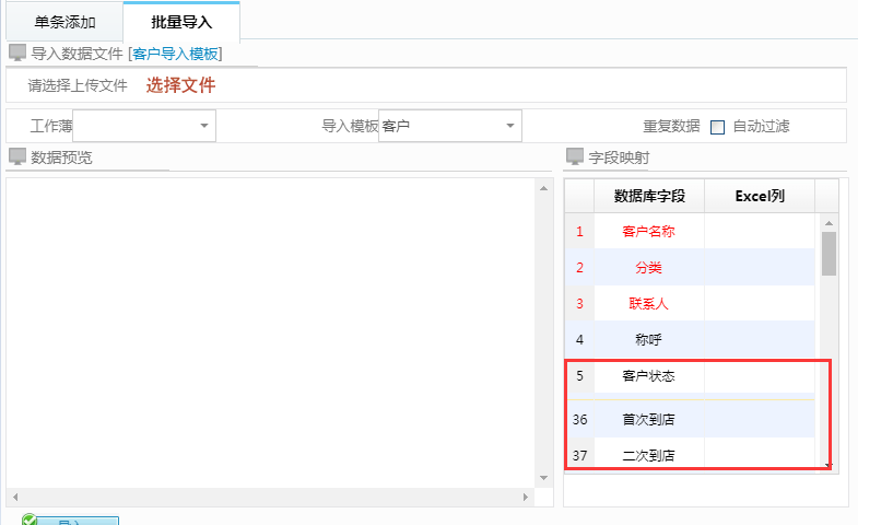 批量添加客戶新增客戶狀態、首次到店、二次到店: